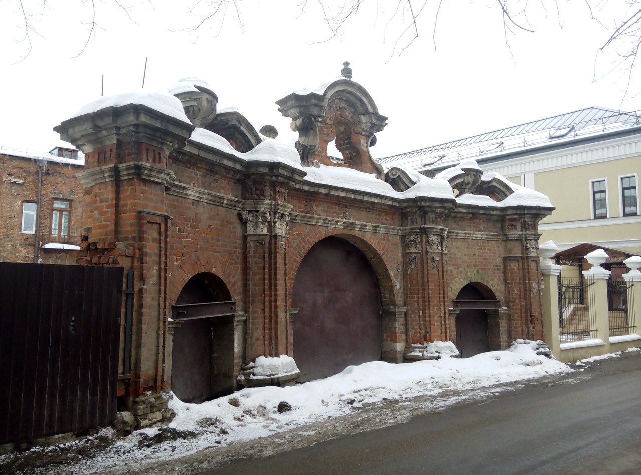 Когда-то улица, на которую выходили парадные въездные ворота усадьбы Лицвенцовых, носила имя этих богатых домовладельцев. Владельцы усадьбы сменились, изменилось и название улицы - Ливенцовская (или Ливенцевская) стала Ломовской, так же стали называться и ворота. В роскошном для XVIII века особняке, построенном Ливенцовыми, новые хозяева открыли самоварную фабрику и почти столетие успешно преумножали свои капиталы. Следующим владельцем усадьбы на рубеже XIX и XX столетий стал купец-рыбопромышленник Игнат Платонов. Ему старый дом оказался не нужен – новый особняк, выстроенный Платоновым, не только скрыл фасад дворца Ливенцовых, но и совсем закрыл проход к нему со стороны Крестовоздвиженской улицы. Бывшая усадьба Ливенцовых к началу XX века оказались заброшенной, а ворота имели вид почти такой же удручающий, что и сейчас.