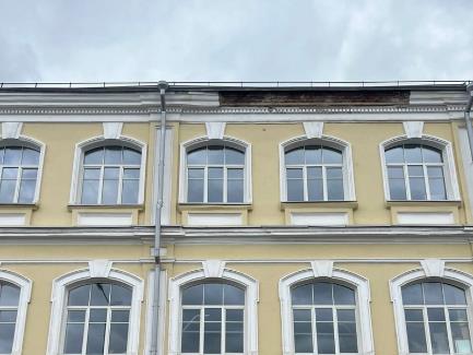 В центре Тулы на улице Союзной обрушилась часть крыши здания. Кусок карниза упал прямо на тротуар, сообщили очевидцы, прислав фото в социальные сети.