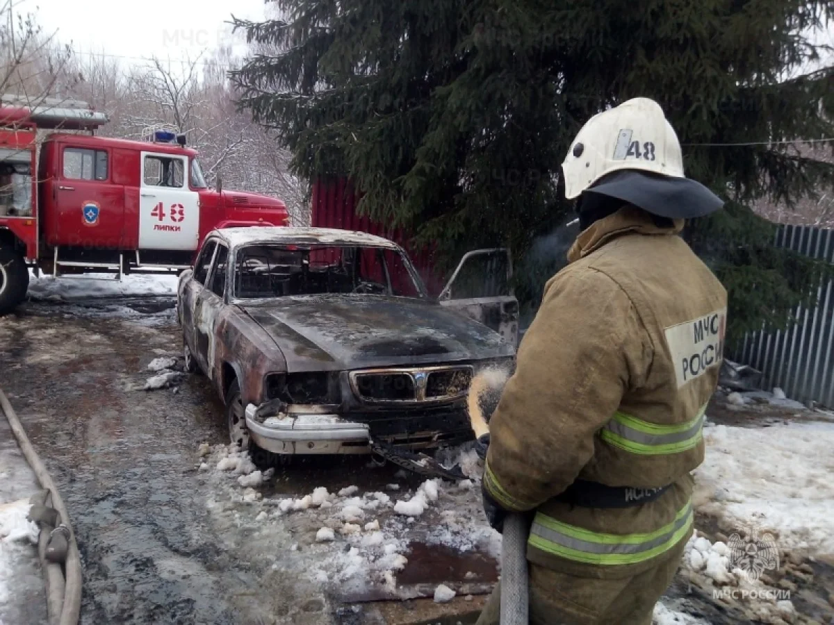 Пожарные получили вызов около 10:50, горел автомобиль «Волга» в деревне Поселки.