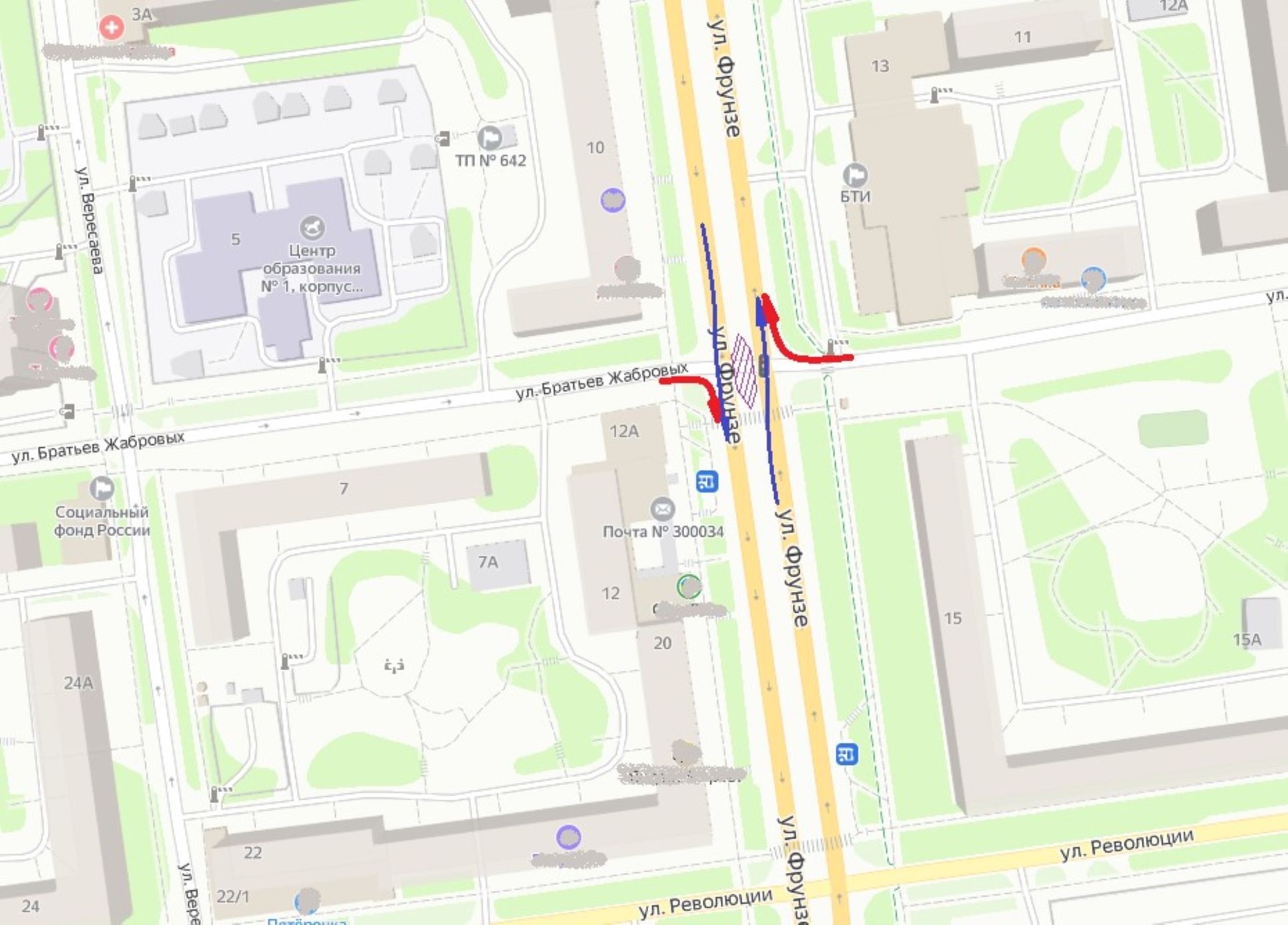 С 4 по 8 ноября на перекрестке указанных улиц запрещен сквозной проезд любого транспорта.