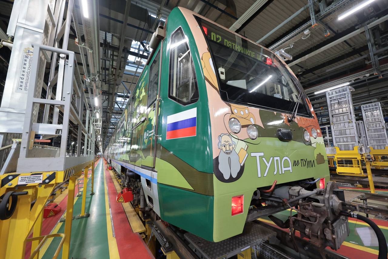 В Московском метрополитене состоялся запуск тематического поезда, посвященного Тульской области. Уникальный состав, украшенный изображениями самоваров, пряников и филимоновских игрушек, будет курсировать по Арбатско-Покровской линии в течение полугода в рамках проекта «Открой Тульскую область».