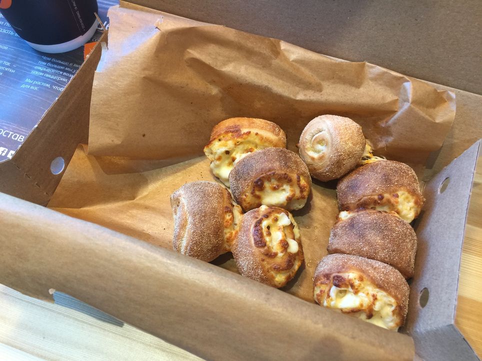 После десятиминутного ожидания, пришлось сходить забрать кофе. Следующий поход к кассе был за рулетиками. Третий (наконец-то!) за пиццей. Чтобы поужинать, придется побегать.