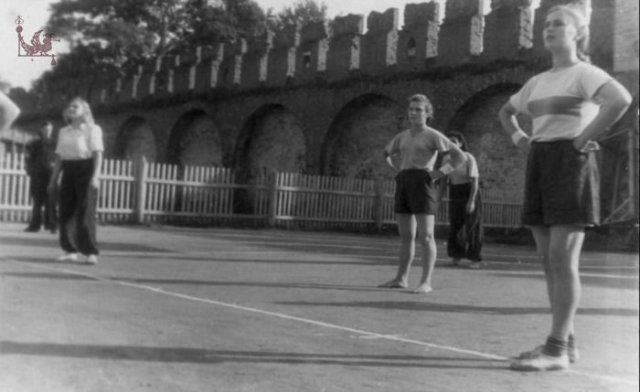 волейбольная и баскетбольная площадки, теннисный корт и площадки для игры в городки. Зрители наблюдали за спортивными