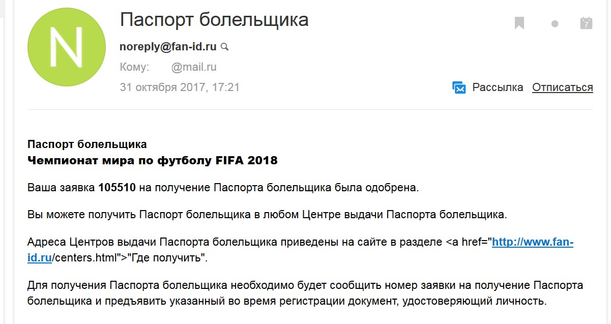 В декабре, когда открылись центры выдачи паспортов болельщика (а в России их всего 9 — по одному в Москве, Санкт-Петербурге, Казани, Сочи, Калининграде, Нижнем Новгороде, Самаре, Ростове-на-Дону, Волгограде), я отправился по адресу: г. Москва, Хамовнический вал, 34 за своим футбольным документом. Это прям рядом со стадионом «Лужники». Кстати, заказать доставку паспорта болельщика можно и по почте. Но я не захотел рисковать и решил лично получить FAN ID.