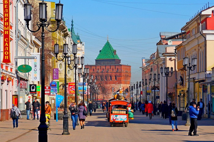 Что касается городских достопримечательностей, непременно нужно пройтись по пешеходной улице Большой Покровской (в простонародье - "Покровке" - прим. авт.). На ней — обилие магазинов лавок, сувениров. Разумеется, большинство посвящены главной достопримечательности города — рекам Оке и Волге.