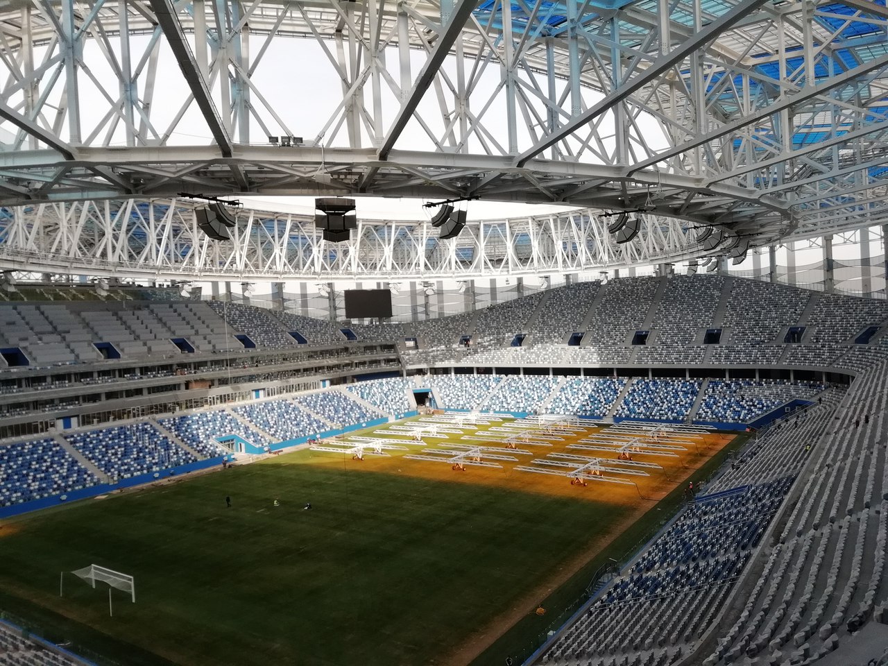 Футбольная арена, на котором пройдут все матчи, называется "Стадион "Нижний Новгород" (мыс Стрелка).
