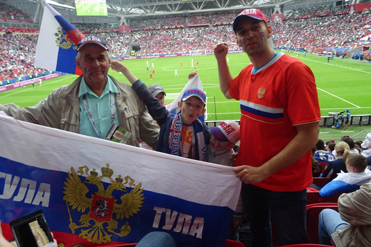 | ! | Самые классные эмоции на больших футбольных событиях дают неожиданные встречи! На Кубке конфедераций в Казани с нами случилась невероятная история. Когда мы пришли на стадион, то обнаружили, что прямо перед нами сидят знакомые туляки, с которыми мы ходим на один и тот же сектор на «Арсенале». Так что, мы и за сборную вместе поболели, и про "Дульную, Ствольную, Арсенальную..." мексиканцам спели хором. А они нам в ответ свою песню зарядили. Вот такие бывают совпадения! |