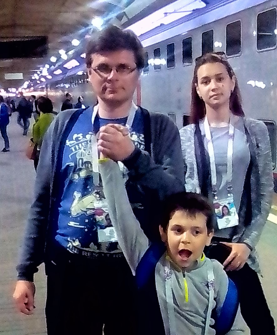 На фото - семья Оксаны на вокзале: муж Вячеслав, сын Дмитрий и дочь Мария.