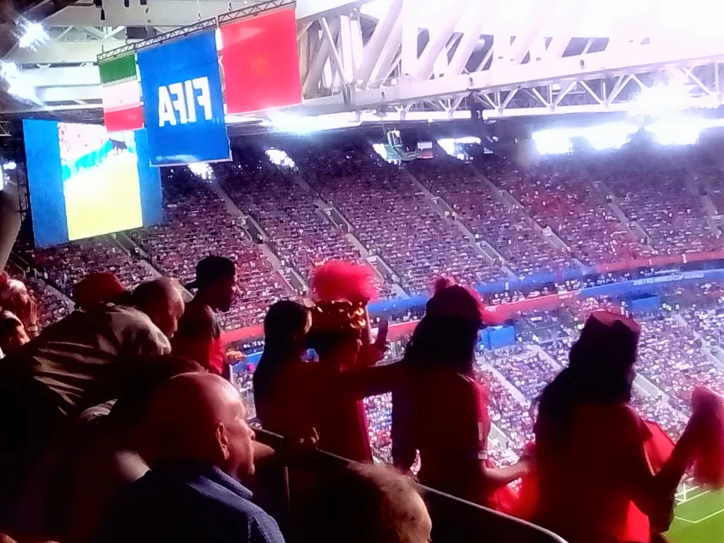 Игра Марокко - Иран оказалась захватывающей. Впрочем, как и любая игра Чемпионата мира в такой атмосфере. Было много интересных моментов, но единственный гол случился уже в дополнительное время. И тут болельщики Ирана (матч закончился со счетом 01:1 в его пользу) не хотели покидать стадион. Они пели и танцевали на протяжении всего времени выхода с территории спортивной арены. В общем и целом - Питер и FIFA большие молодцы!".