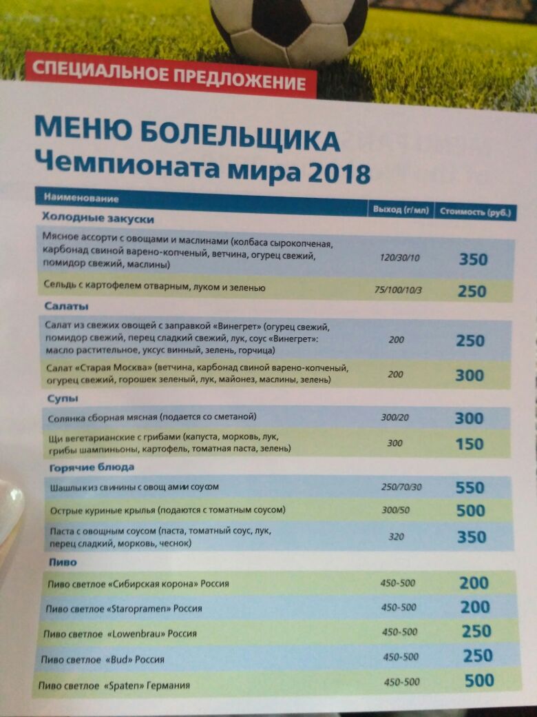 Кстати, в вагоне-ресторане действует специальное меню к ЧМ-2018.