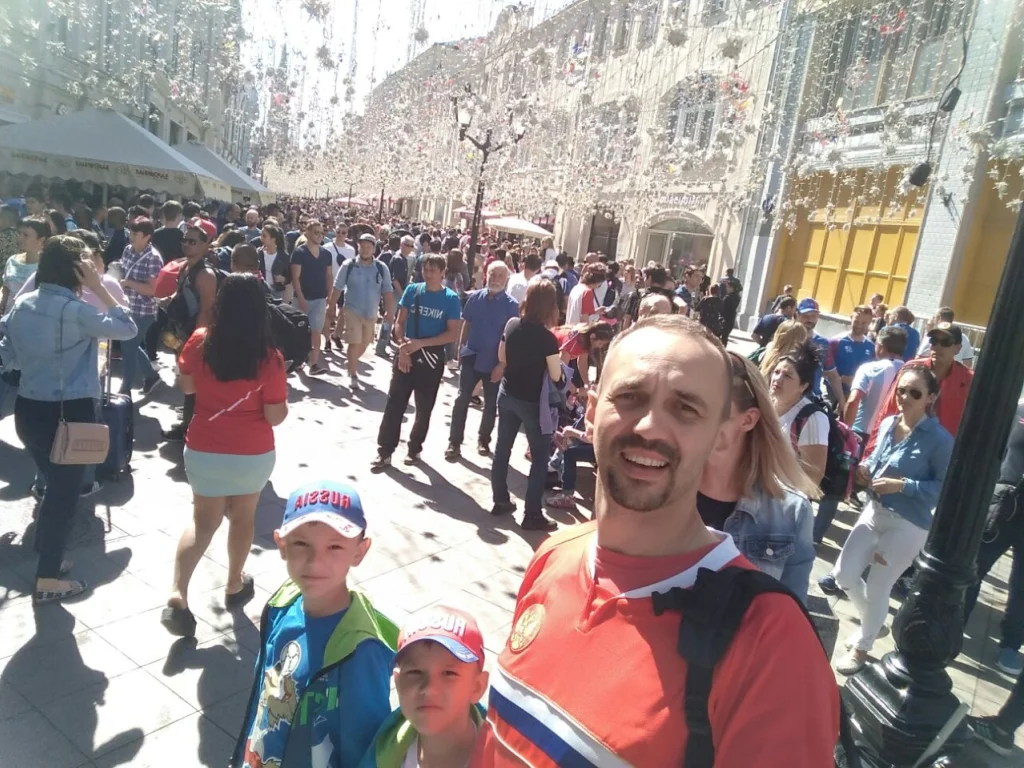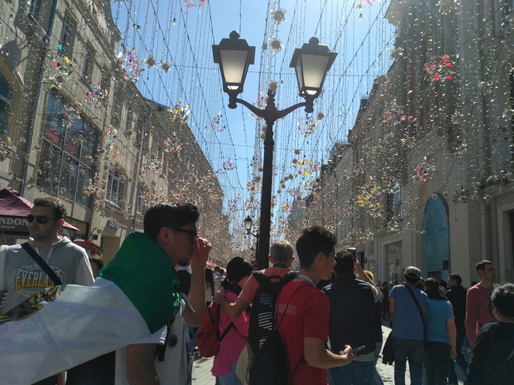 "Чемпионат мира для нас начался ещё в Москве. Метро пестрит всеми цветами радуги благодаря болельщикам со всего мира. А улица Никольская в центре напоминает один большой карнавал! Праздник там не прекращается ни на минуту. Отовсюду слышны песни во славу любимых команд. Танцы под аккомпанемент барабанов и прочих музыкальных инструментов. Весь мир сейчас слился воедино на этом празднике футбола! Если хотите понять, что такое чемпионат мира по футболу - вам сюда!"