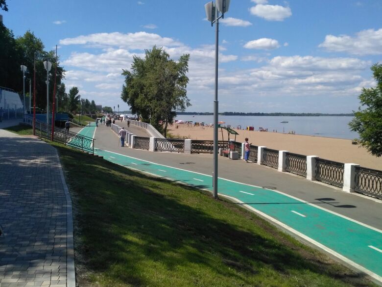 "Набережная - это самое шикарное место в Самаре. Здесь широкие песчаные пляжи, и конечно же широкая гладь Волги. Мы поймали себя на мысли, что если бы не видели деревья на другом берегу, то создаётся полное ощущение, что находишься где-то на море. Здесь вперемешку гуляли как болельщики Сербии, так и Коста-Рики, наслаждаясь видами великой русской реки. Многие из них решили посмотреть на город с воды. Мы тоже присоединились, отправившись на экскурсию на речном трамвае. С воды Самара выглядит великолепно, а речной простор восхищает".