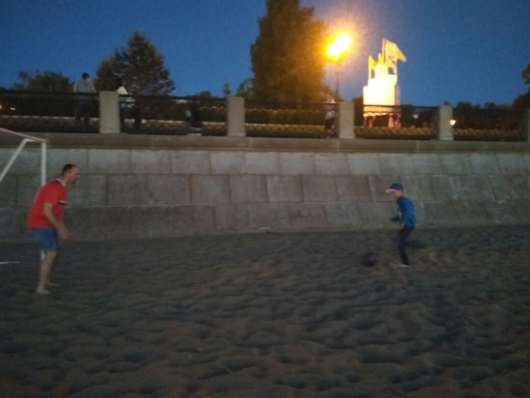 Пока мы добрались до центра Самары, уже наступил вечер. Закат этого крупнейшего футбольного дня мы встретили, играя в футбол на пляже. Как же ещё!