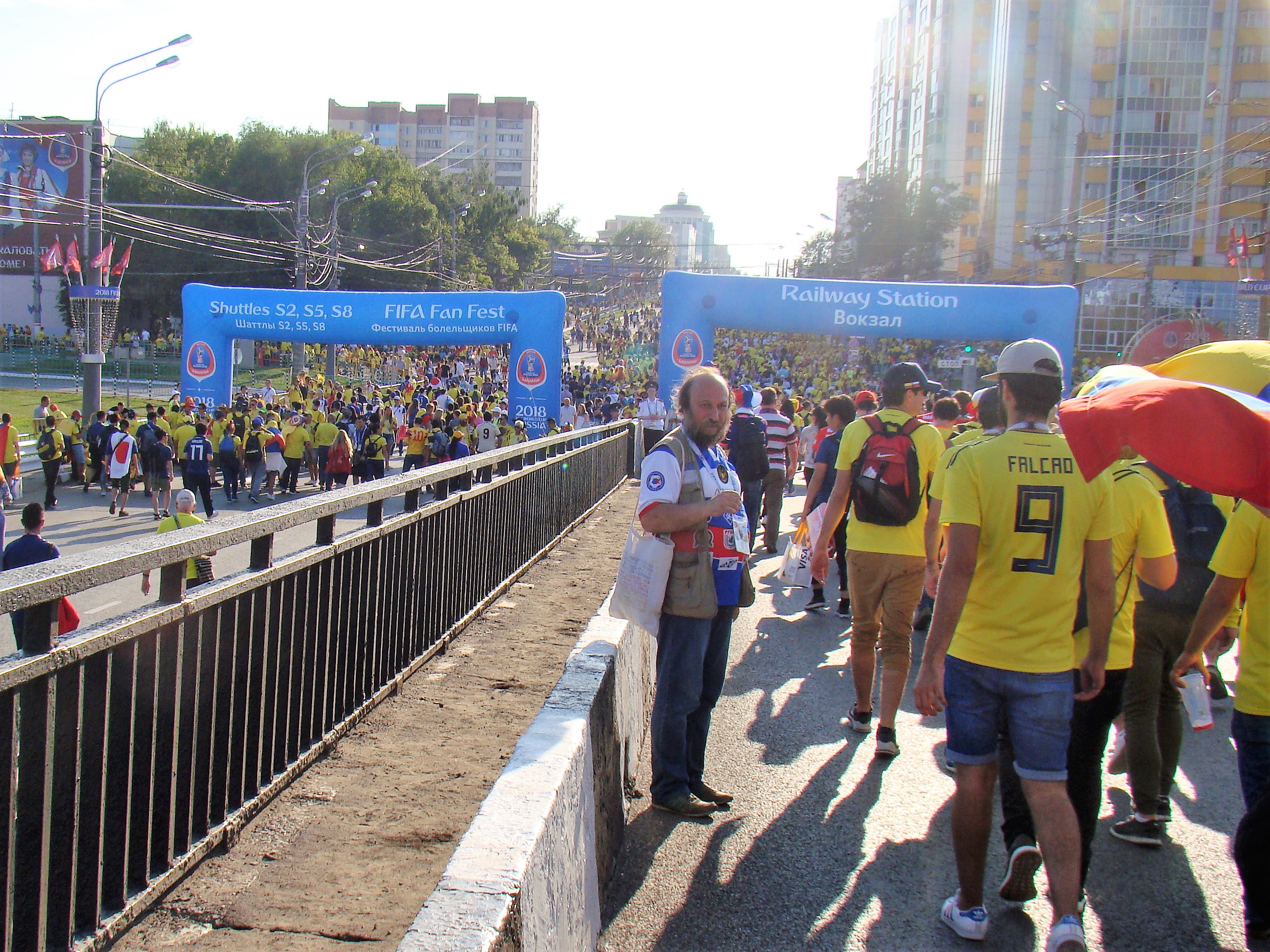 И как небольшие островки, слегка ошалевшие от такого количества гостей, саранчане. Но при этом очень приветливые, добродушные, готовые всегда прийти на помощь. Прогулявшись по центру, садимся в специальный автобус-шатл, который отвозит нас на стадион. Очень много транспорта задействовано для болельщиков и единственно, кому пришлось уступить дорогу, это японской принцессе, приехавшей на матч Колумбия – Япония. Очень быстро и профессионально проходит досмотр на стадионе, после которого поднимаемся на трибуны, такие же желтые, как и весь город. Думаю, что болельщикам "Арсенала" понятно, что творилось на трибунах во время матча, но когда колумбийцы замолчали, шокированные тем, что их команда проигрывала японцам, я был очень горд за то, что болельщики "Арсенала" продолжают поддерживать свою команду, даже если она проигрывает.