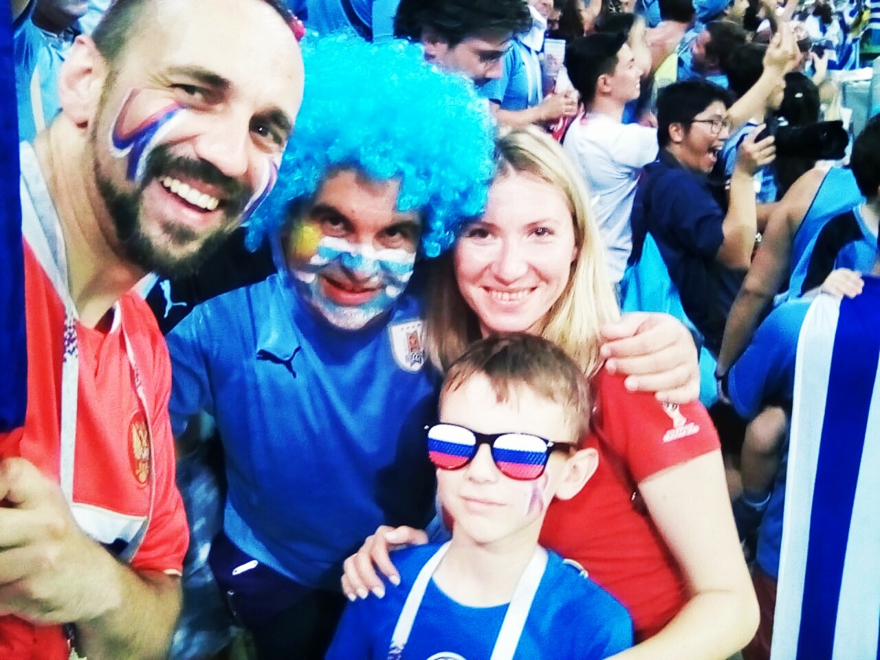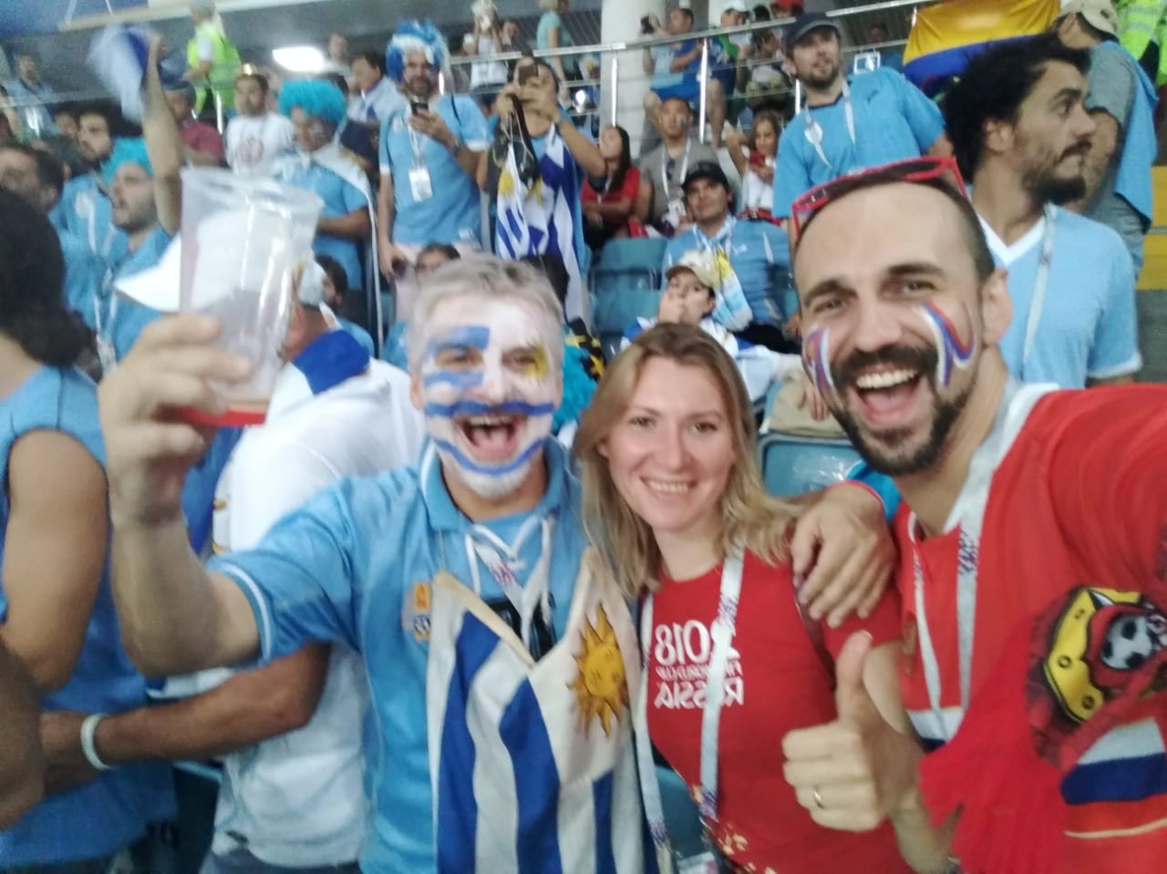 А по окончанию матча в наш сектор стянулись уругвайцы, кажется, со всего стадиона, и ещё минимум пол часа мы все вместе пели, танцевали, обнимались, наслаждаясь атмосферой большого футбольного праздника у нас дома! Спасибо, Уругвай! Спасибо ЧМ-2018! Это просто незабываемо!