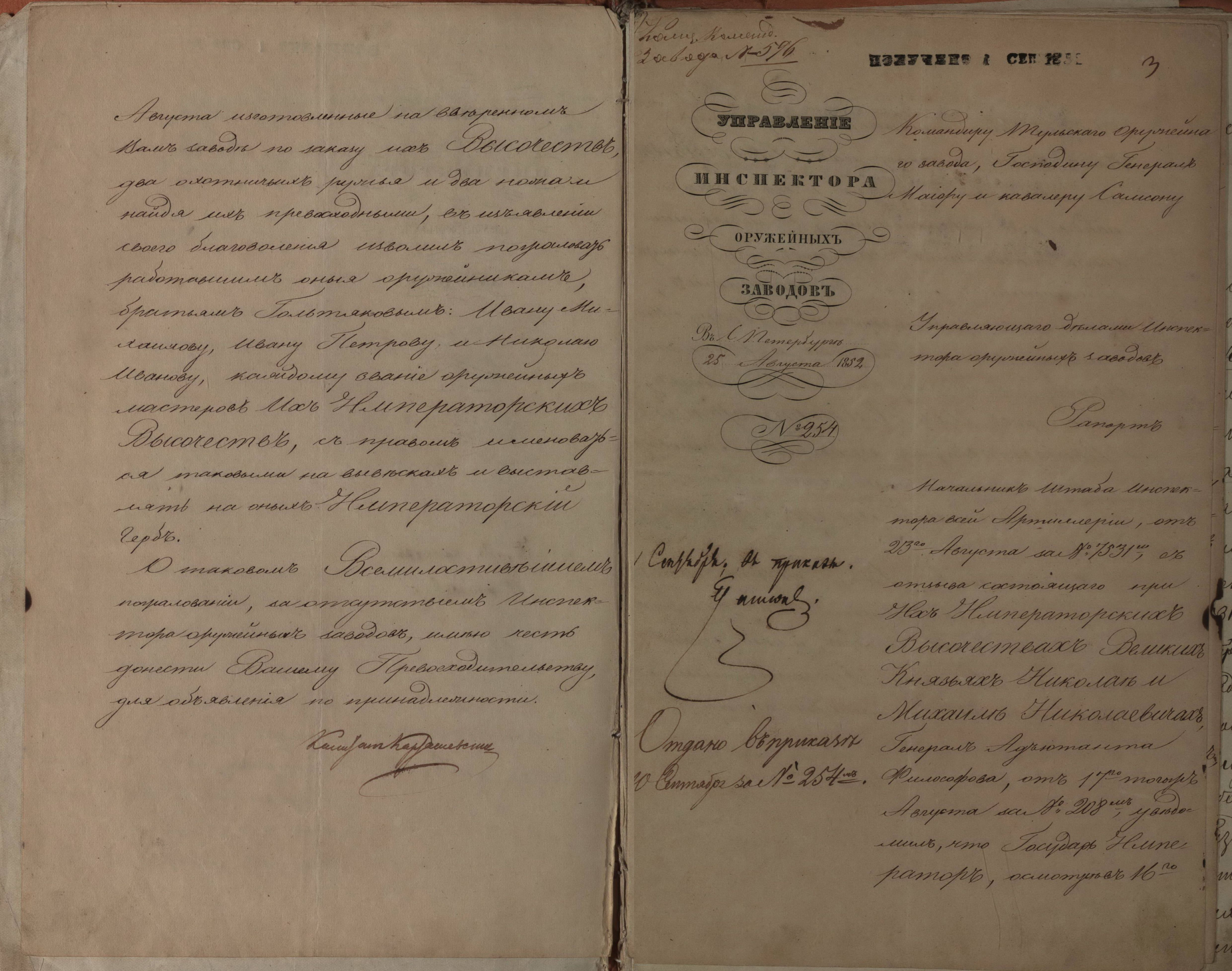 В 1852 г. Петр Гольтяков становится оружейным мастером Великих князей Николая и Михаила Николаевичей.