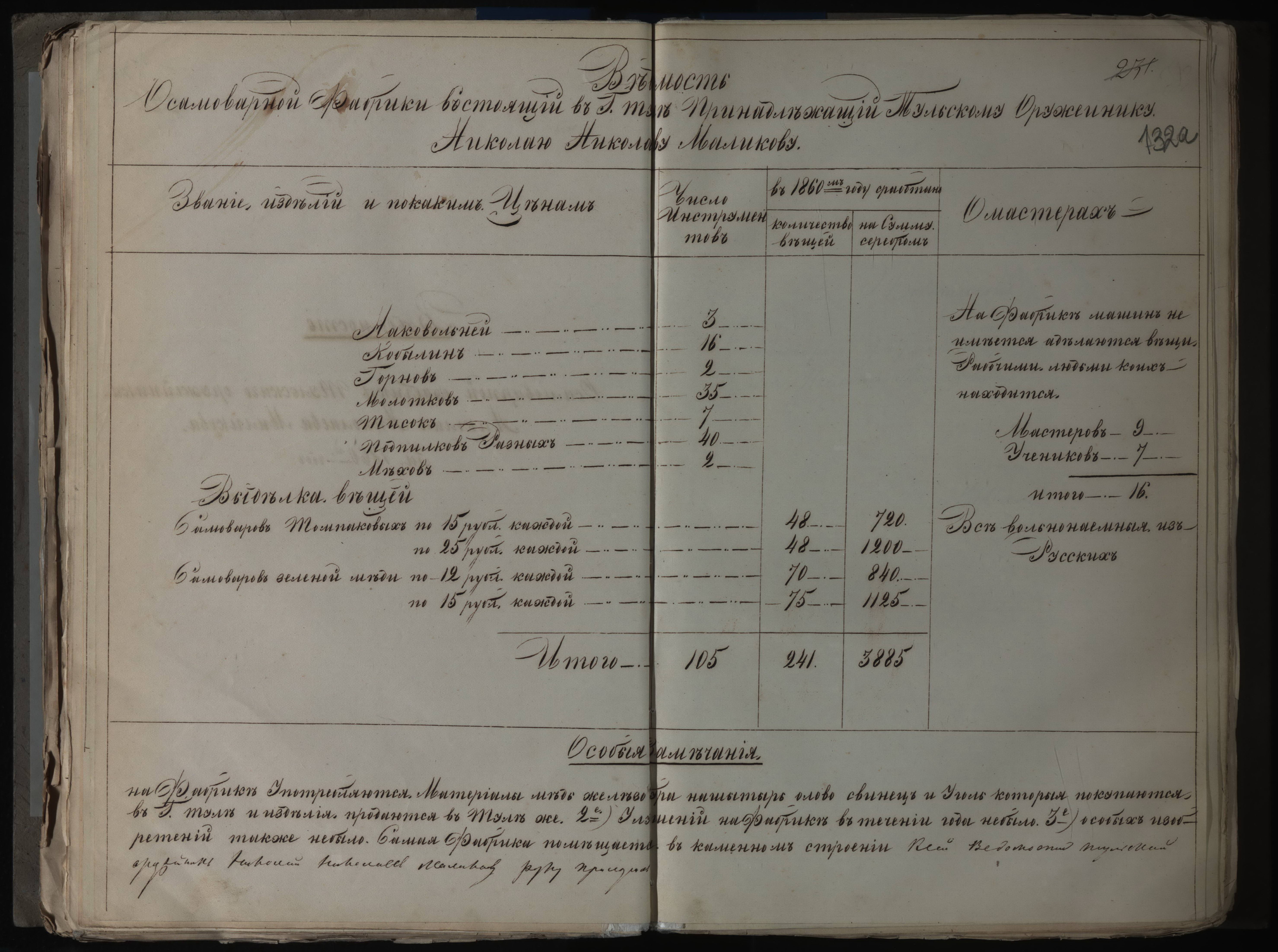 «...в 1853 г. например было сделано 50 пудов весовых самоваров и к каскам нового образца «приборы, гербы, пуговицы и разные мелочи» на 500 руб.сер. Весь доход фабрики составил 1300 руб. сер.», - пишет Бритенкова.