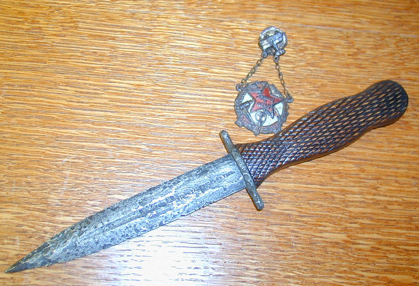 "Самым удобным ножом я считаю нож американской системы, с некоторыми, сделанными мною изменениями. Эти ножи имеют обоюдоострый клинок, заостренный к концу и с кровостоками по бокам, шесть вершков длины (26,7 см), один вершок ширины (4,45 см) и восемь миллиметров толщины. Клинок отделяется от рукоятки стальной перекладиной, концы которой, обращены в разных размеров отвертки, рукоятка из крепкопородного дерева держится на клинке широким винтом. Носится этот нож на чёрном поясном ремне в деревянных, обтянутых чёрной кожей ножнах, концы которых обделаны вороненой сталью. Размеры ножа и перевес его так рассчитаны, что он весьма удобно держится в руке и им ловко можно рубить, колоть, резать и вспарывать натиском кверху или книзу. Первый такой нож отлично изготовил мне тульский мастер Егор Самсонов, а затем такие ножи стали делать на Златоустовском казенном заводе".