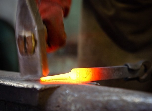 Рессорная сталь отжигалась в кузнечном горне, куда загружался березовый или дубовый уголь. Воздух подавался с
