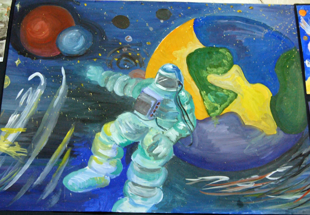 Кстати, вы еще можете успеть принять участие. Для этого срочно хватайте своего ребенка, краски, кисти, фломастеры или карандаши и рисуйте космос!