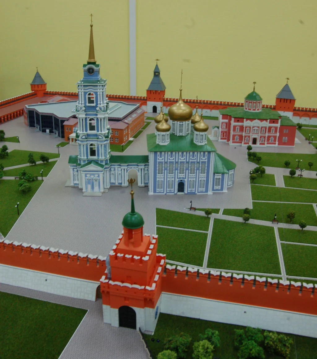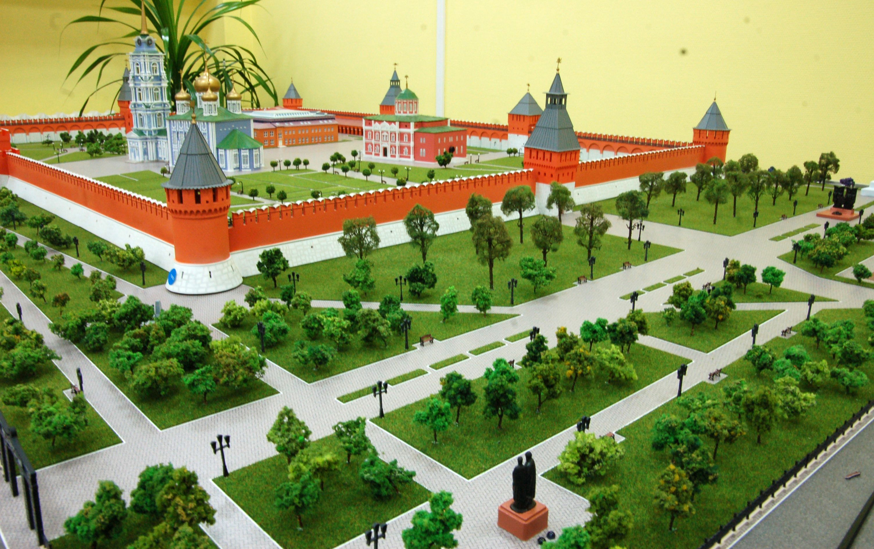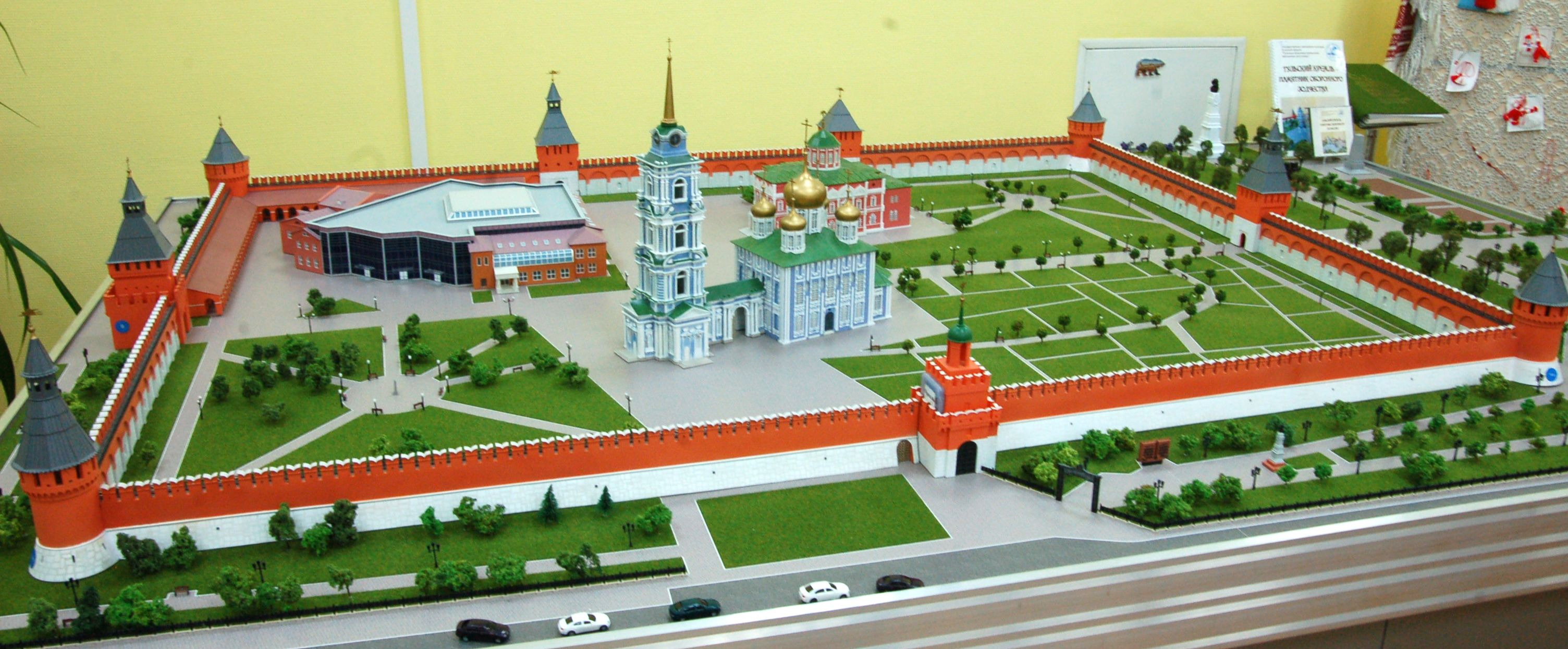 С недавних же пор этот пробел может восполнить всякий желающий — и вовсе необязательно быть незрячим — потому что в Туле появился огромный макет современного Тульского кремля в масштабе 1:150. Детализация поразительная! Площадь архитектурного ансамбля с окружающей территорией занимает почти пять квадратных метров. Здесь реально можно ощутить пальцами каждый кирпичик, каждый зубец стен, колонны храмов. Более того, как утверждают создатели макета, даже фонарные столбы, деревья и скамейки на дорожках — все на своих местах. Для создания макета использовались самые настоящие чертежи, в том числе, некоторые приходилось запрашивать у Тульской епархии.