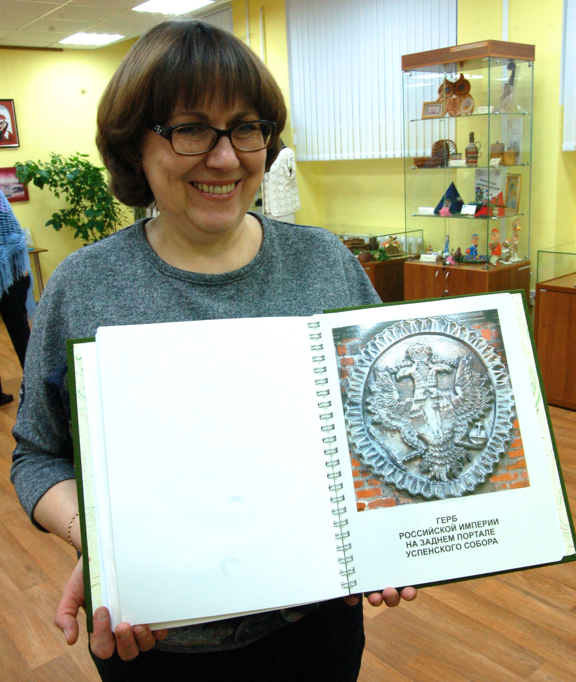 Так появилась не только тифлоэкскурсия «Тульский кремль — памятник оборонного зодчества». На основе ее текста было подготовлено печатное издание с рельефнографическими иллюстрациями, на которых можно порой и в натуральную величину пощупать в более крупном размере различные элементы архитектурного ансамбля. А тот же древний герб, расположенный на заднем портале Успенского собора, так и вовсе в натуральную величину.