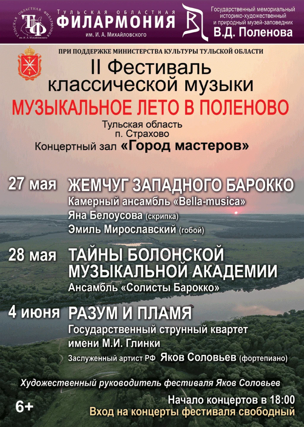 С 27 мая по 4 июня на территории Государственного мемориального историко-художественного и природного музея-заповедника В.Д. Поленова пройдёт II Фестиваль классической музыки «Музыкальное лето в Поленово»