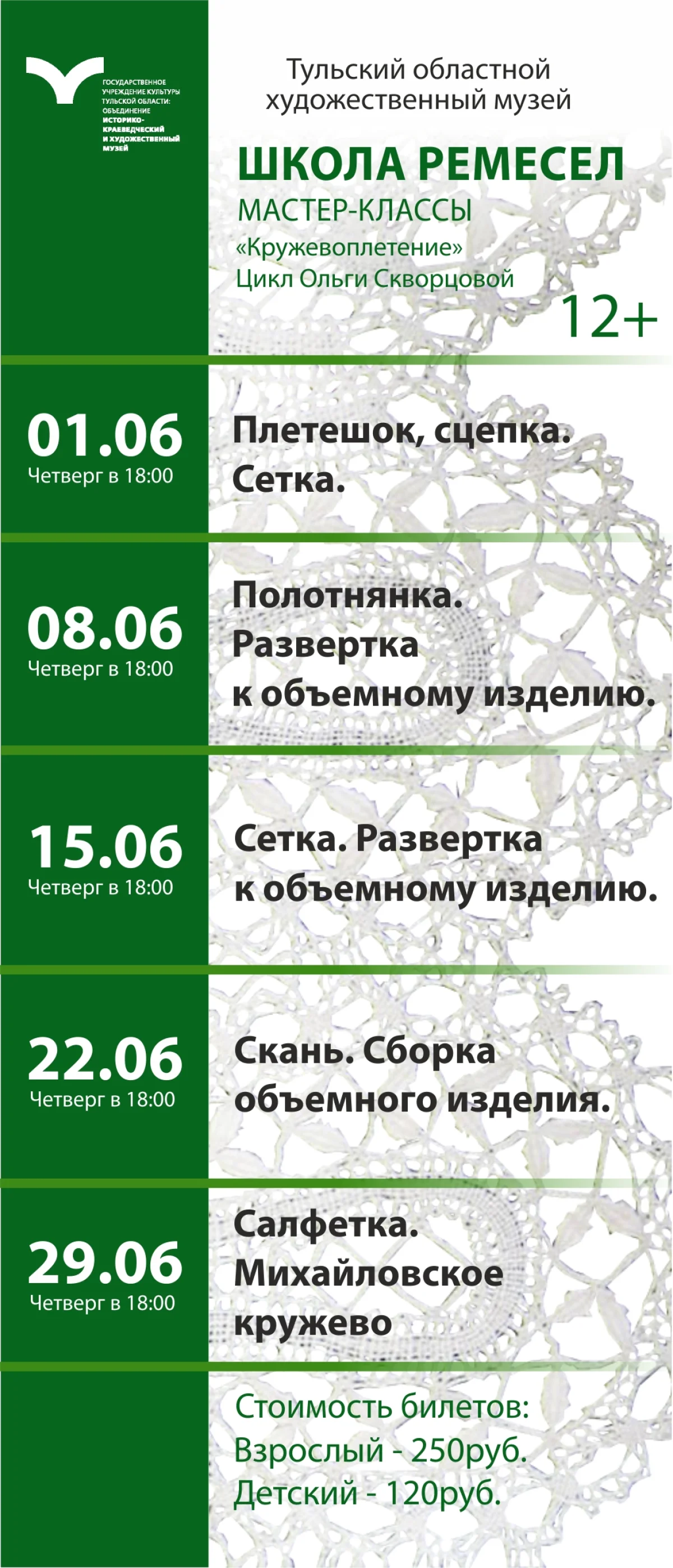 Тульский областной художественный музей приглашает на мастер-классы по кружевоплетению Ольги Скворцовой.