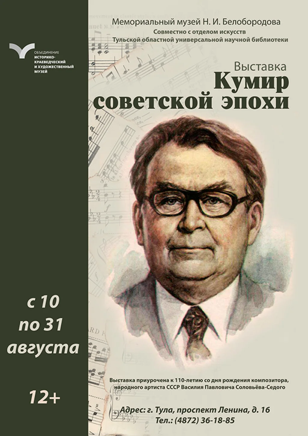Выставка приурочена к 110-летию со дня рождения композитора, народного артиста СССР Василия Павловича Соловьёва-Седого. Он один из самых значительных композиторов-песенников в России XX века.