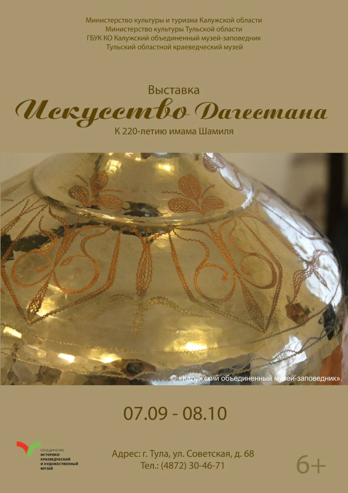 Тульский областной краеведческий музей в рамках межрегионального сотрудничества представляет выставку «Искусство Дагестана. К 220-летию имама Шамиля» из собрания Калужского объединённого музея-заповедника.