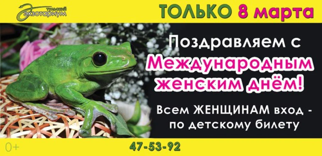 В честь Международного женского дня Тульский экзотариум снизил цену на билеты для женщин на 25%! Это значит, что тулячки и гости города смогут полюбоваться на рептилий по цене детского билета. Пустячок, а приятно.