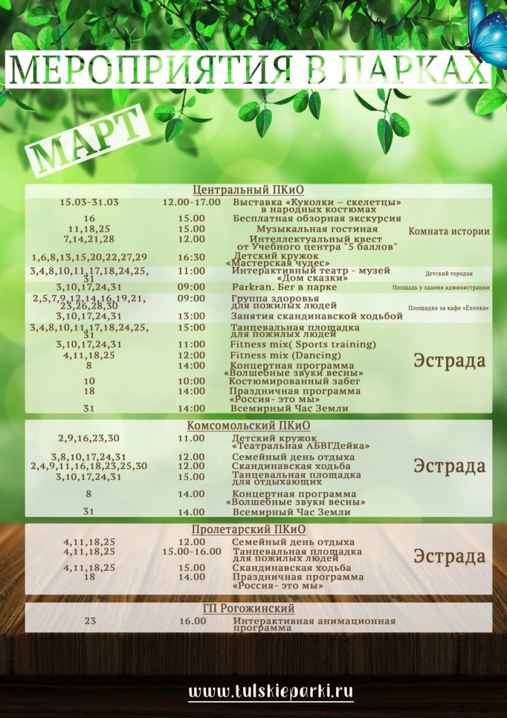 Весной туляков как всегда ждёт насыщенная и интересная программа. Это и экскурсии, и спортивные соревнования, и
