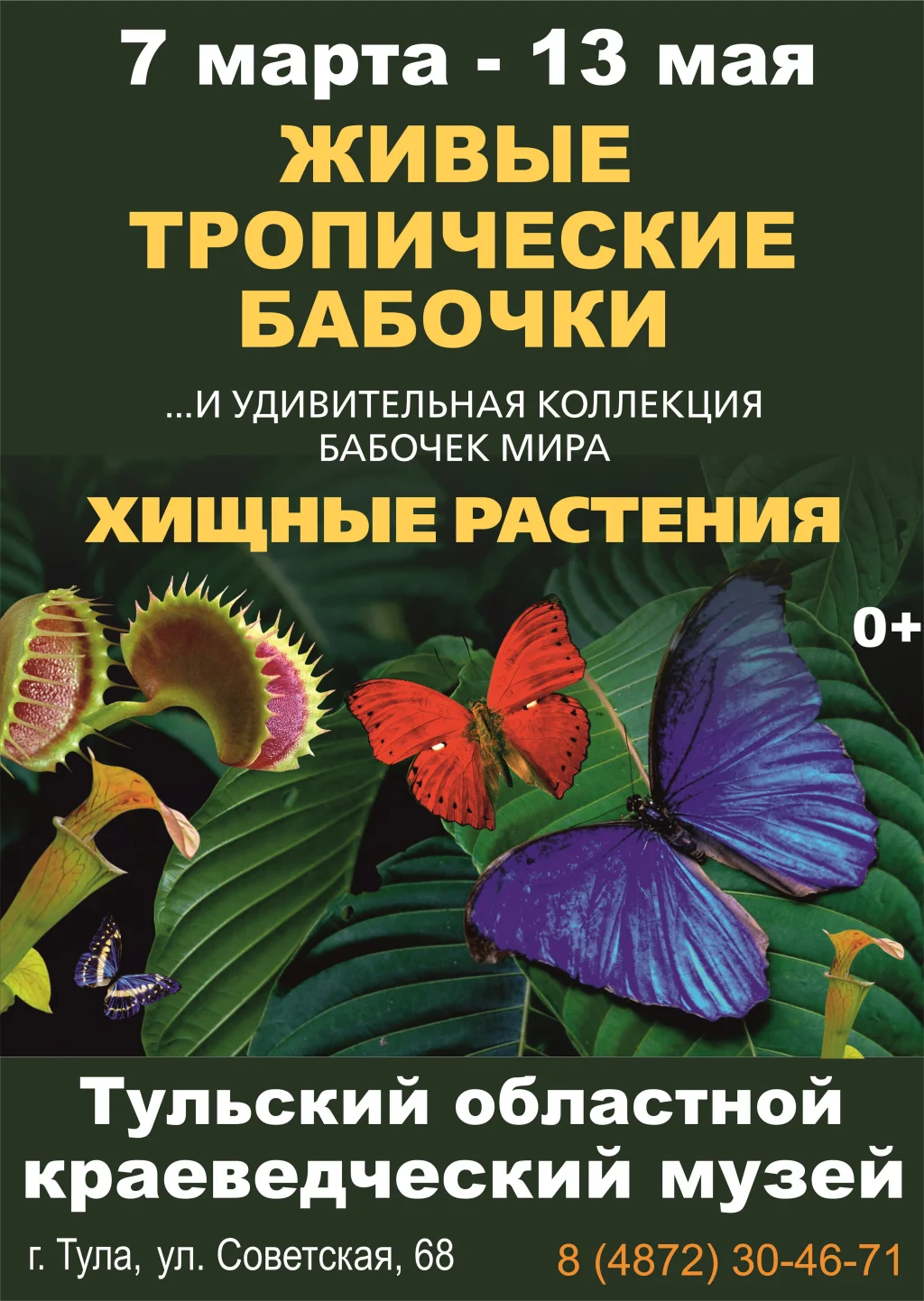 Накануне Международного женского дня в Тульском краеведческом музее откроется выставка «Живые тропические бабочки и хищные растения».