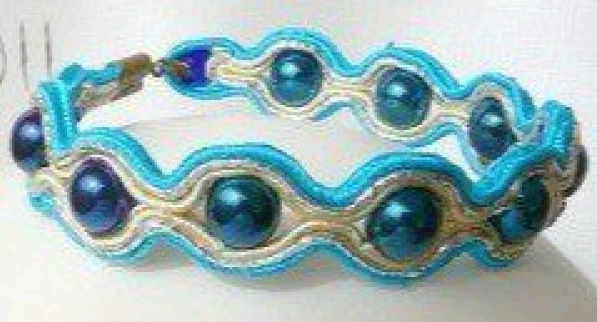 Делать его мы будем из сутажа и бусин. Сутаж – это плетёный шелковый шнурок, который раньше использовался для отделки одежды. Сейчас в сутажной технике мастерят сумочки, украшения и другие аксессуары.