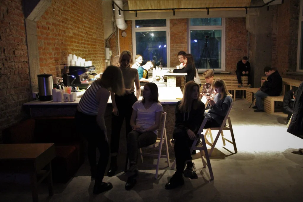 Сейчас там совмещается лекторий, танцпол, кофейня и бар.