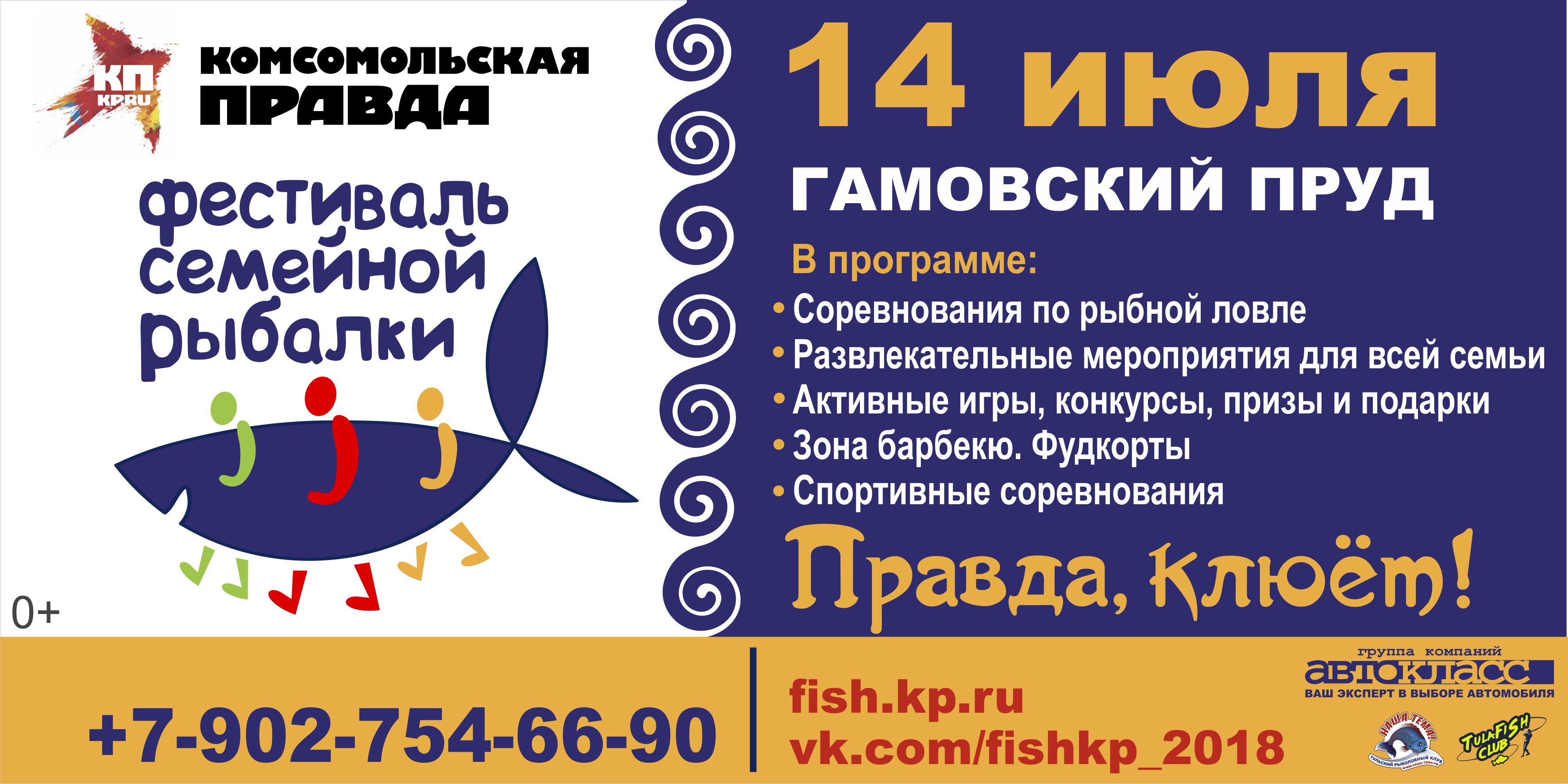 Напомним, что 14 июля 2018 года в Туле пройдет фестиваль семейной рыбалки. Это уникальное спортивно-развлекательное мероприятие, организованное газетой и радио «Комсомольская правда», состоится в 11 регионах России, в том числе и в Туле.