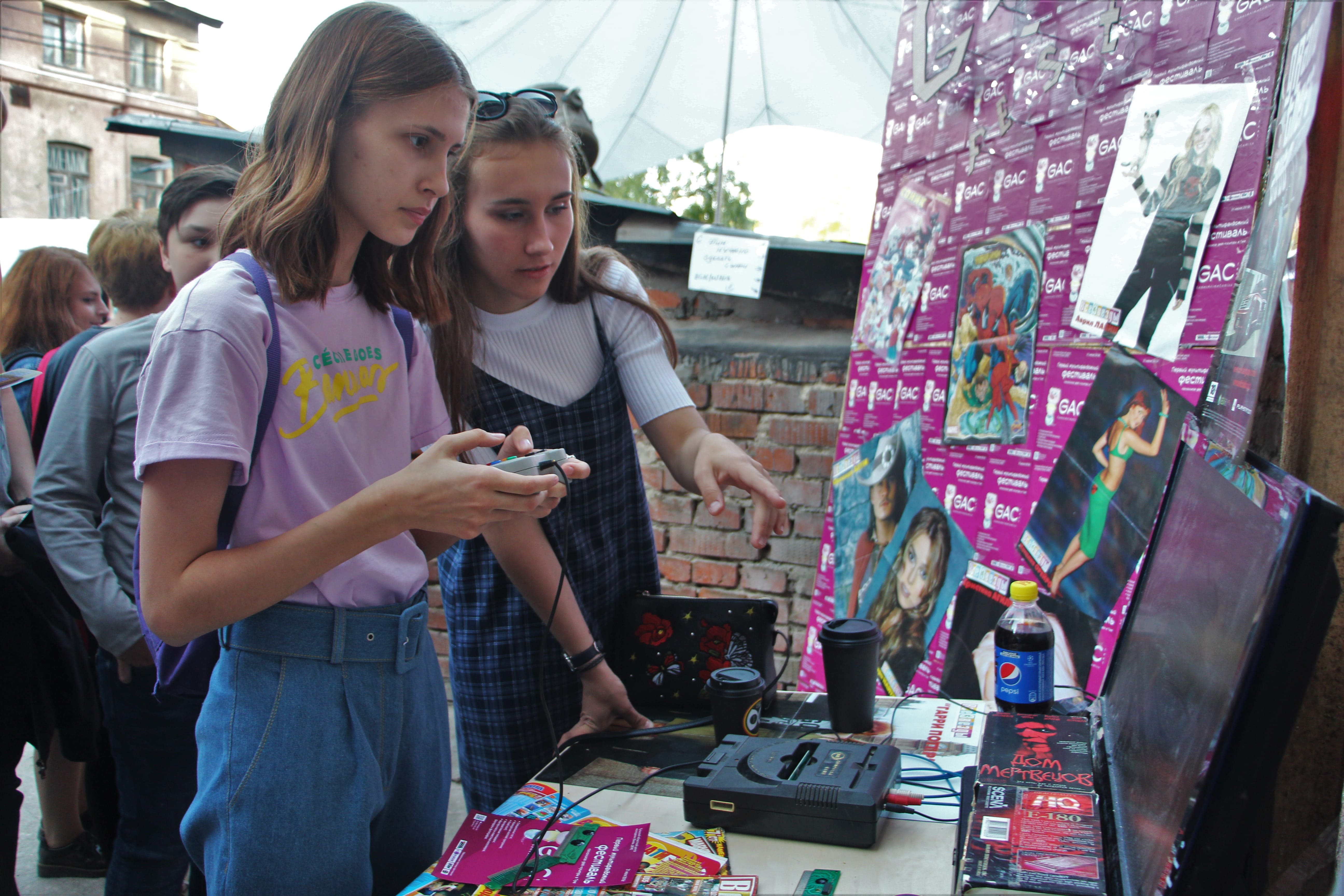Арт студия “Палитра” провела мастер класс по рисованию акварелью для всех желающих. Пиарился на фестивале очередной фестиваль аниме и гик-культуры “GamesAnimeComics fest”. У них можно было поиграть в одну из первых игровых приставок в нашей стране “Денди”, угоститься Читосом, поиграть в фишки. Стена была увешана уже ностальгическими постерами со старыми музыкальными группами и играми.