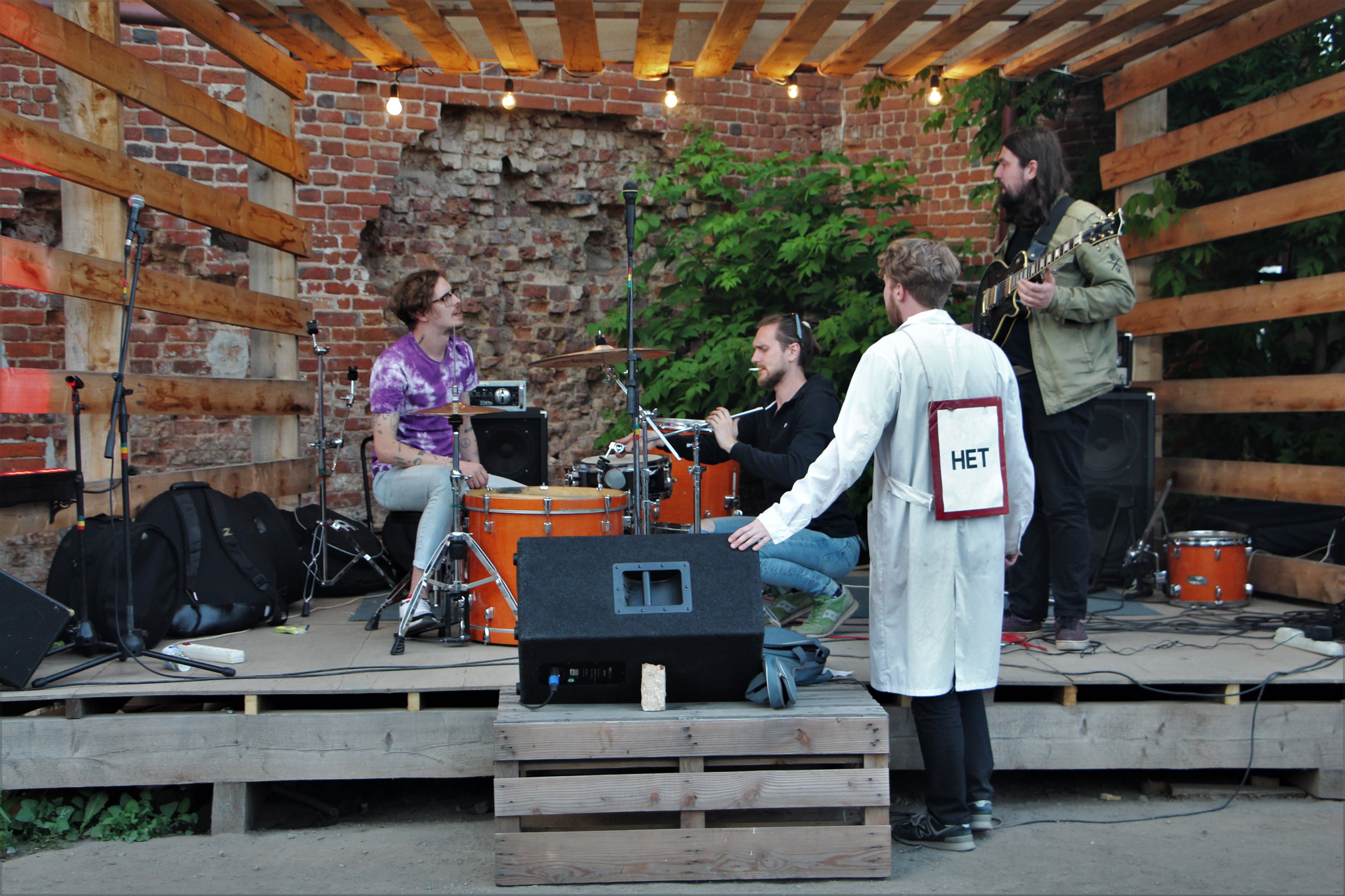 Больше всего посетителям понравилась музыкальная часть. Много кто отрывался и поднимал столбом пыль. Первыми выступала мелодичная тульская банда “Fluff`s”, к ним присоединился Вадим Лукьянов из группы “Youthless” и исполнил песню. Ядерное выступление группы “Shokalsky Revenge” было самым интересным, на мой взгляд. Завершил музыкальную часть арт-панк проект “Кружок”.