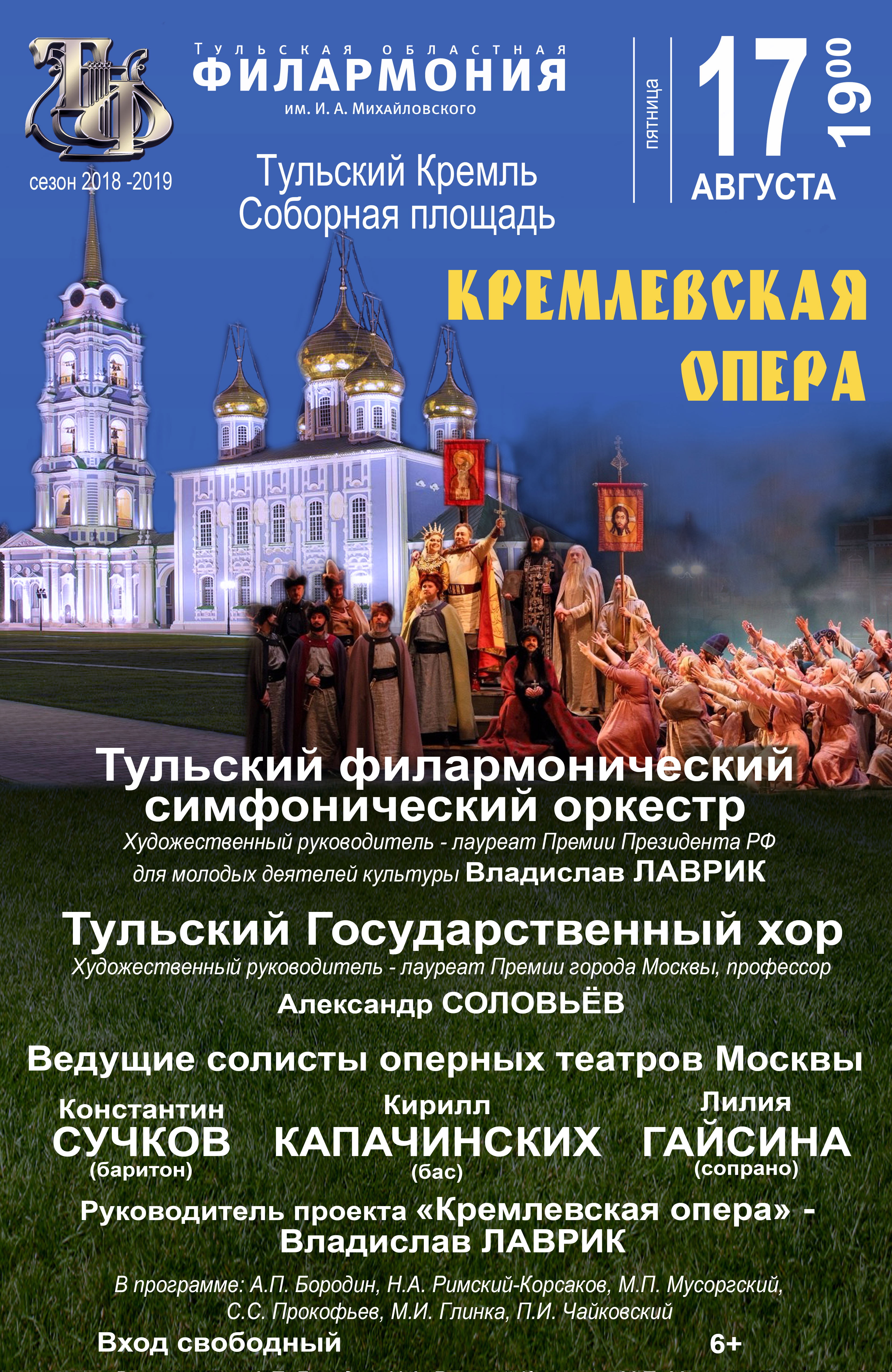 17 августа музей «Тульский кремль» приглашает на гала-концерт «Кремлёвская опера»