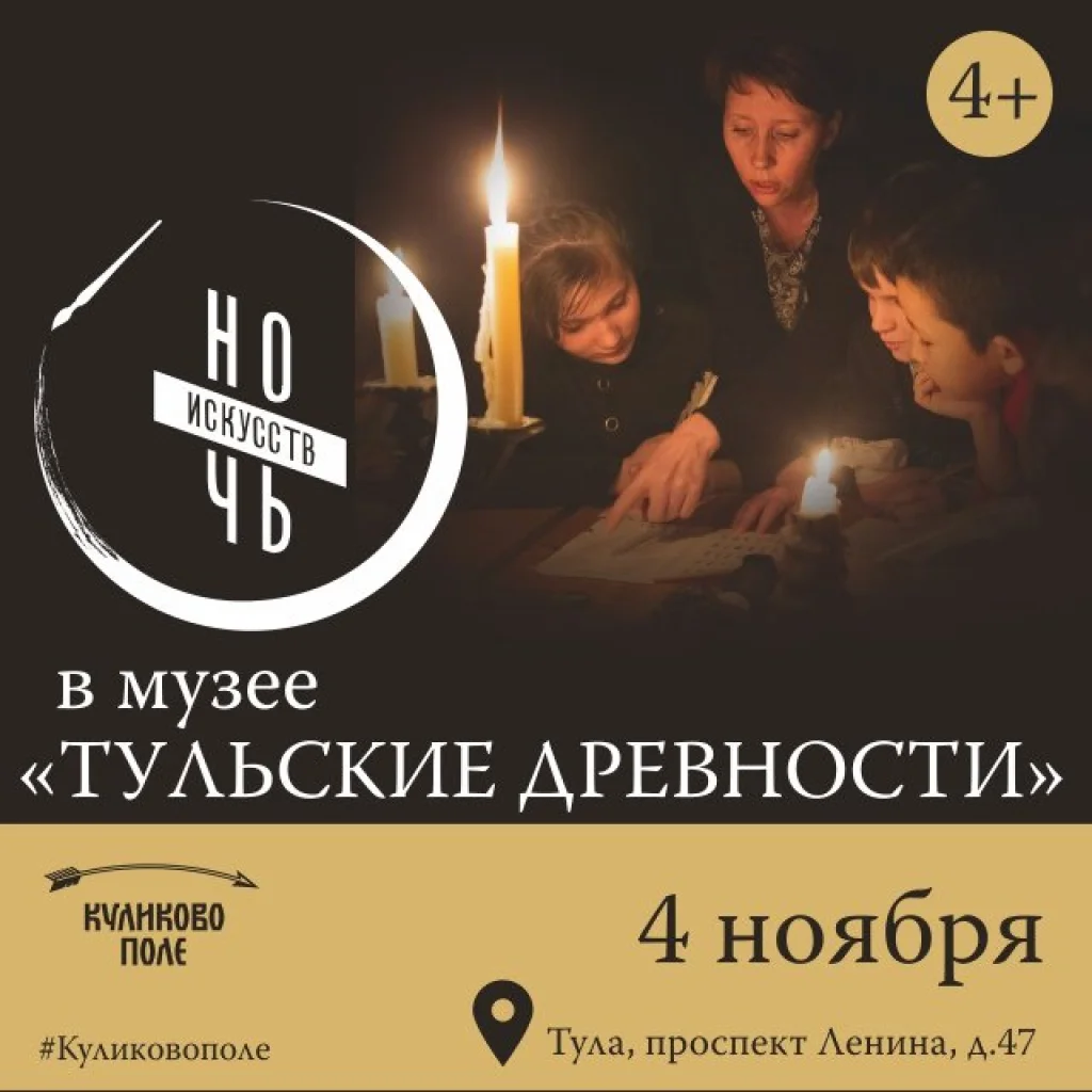 4 ноября музей «Тульские древности» приглашает на праздничную программу в рамках всероссийской акции «Ночь искусств». Посетителей ждут цветочные мастер-классы от Екатерины Зерновой, интерактивная сказка и многое другое. Начало – в 18:00.