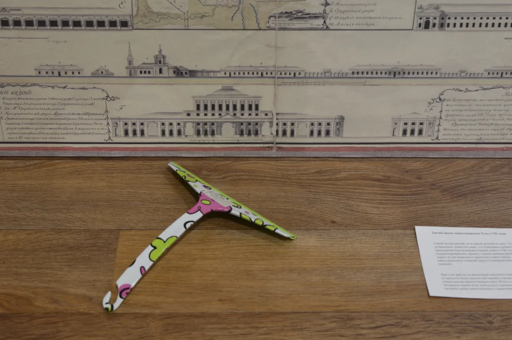 Экспозиция разделена на несколько залов, в строгой хронологии - от 18 века до наших дней. Пустившись по этому маршруту, можно проследить за движением градостроительной мысли разных эпох: от екатерининской попытки упорядочить хаотичную застройку русских городов решёткой «правильных улиц», до обрастания Тулы площадями (Восстания, Челюскинцев, Победы) и копирования архитектурной парадигмы Москвы – свой Дом Правительства, свой Ленин и своя площадь для парадов и демонстраций.