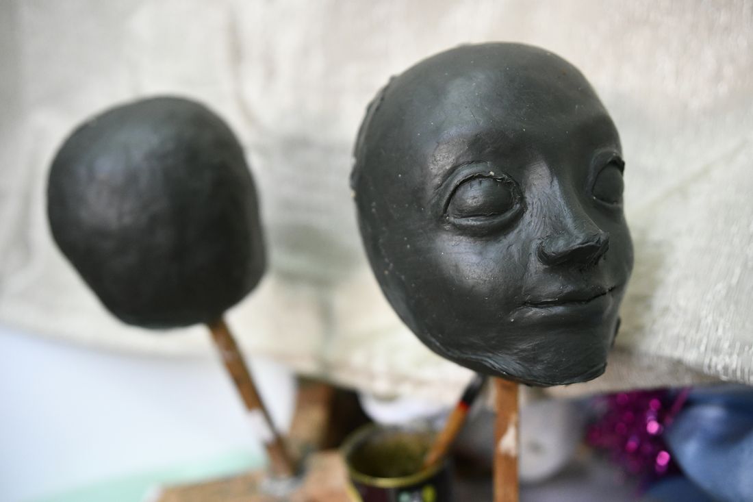 - Головка лепится сначала из глины или пластилина, затем ее отливают из гипса. Потом выклеивают папье-маше. Это