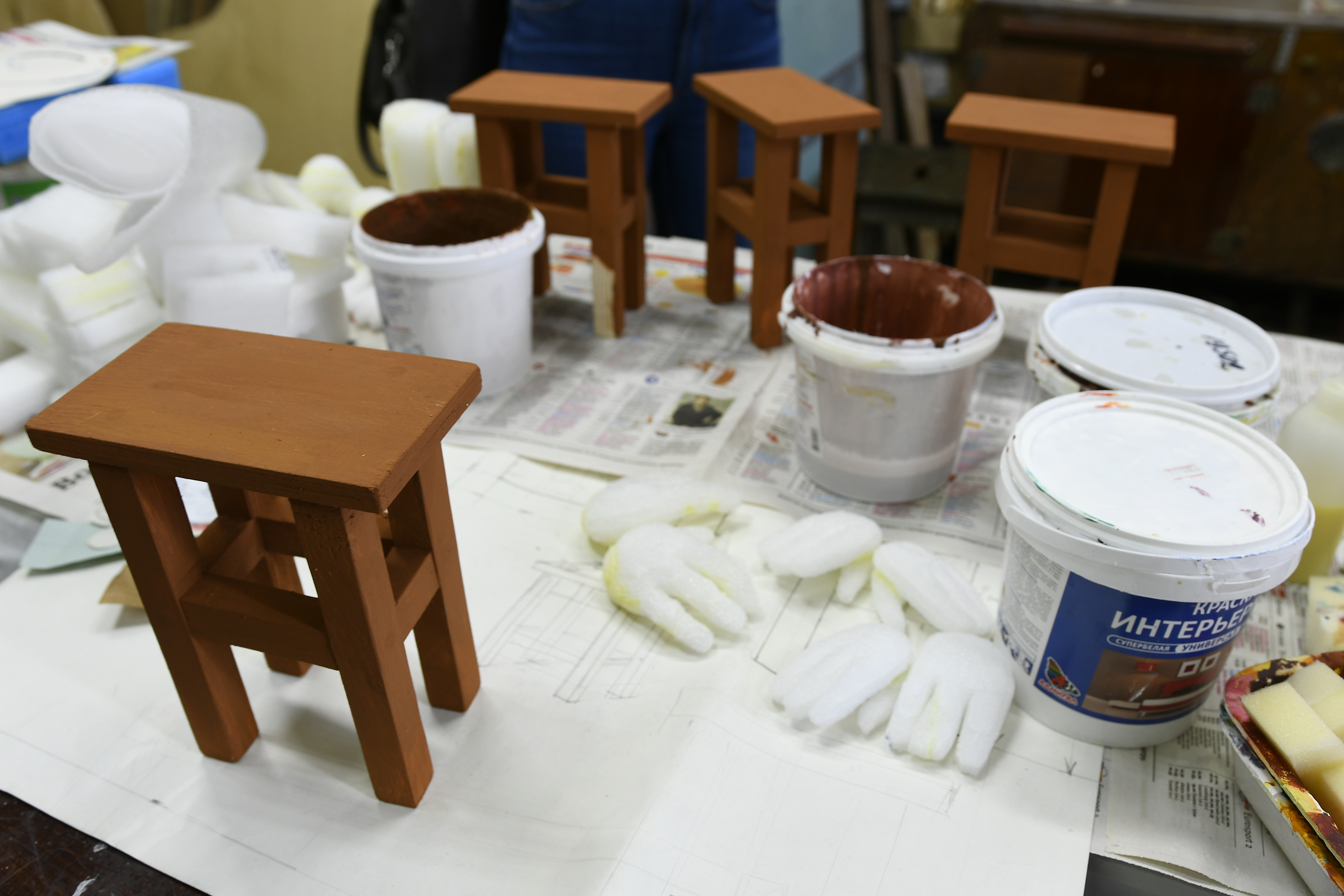 Также в мастерской готовится реквизит. Например, небольшие стульчики и стол будут использованы в одной из первых