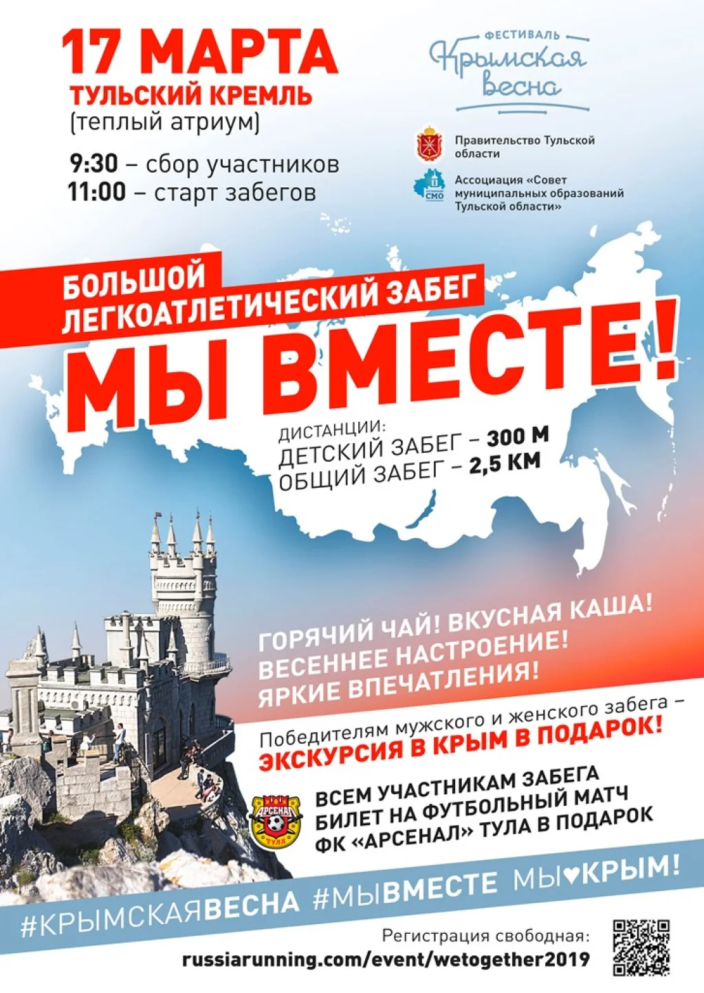 В Туле 5-летие воссоединения Крыма с Россией отметят легкоатлетическим забегом и бесплатным показом фильма «Крым»