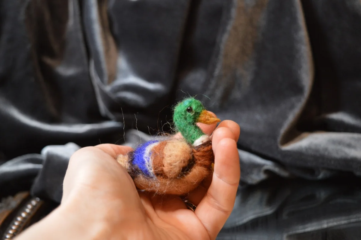 Эта птица хорошо знакома всем. Мастер Екатерина Зернова предлагает сделать уточку яркой, добавив блестящих волокон в оперение, а клюв оформить совсем как настоящий. Если поместить такую игрушку на зеркальную поверхность, получится прекрасное интерьерное украшение!