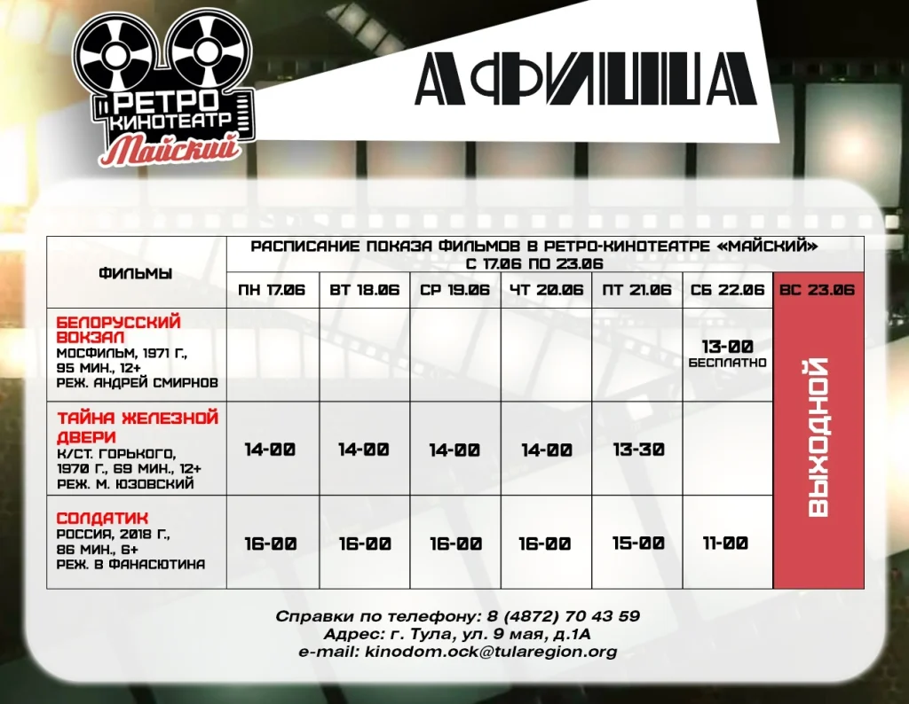 В тульском ретро-кинотеатре «Майский» бесплатно покажут «Белорусский вокзал»