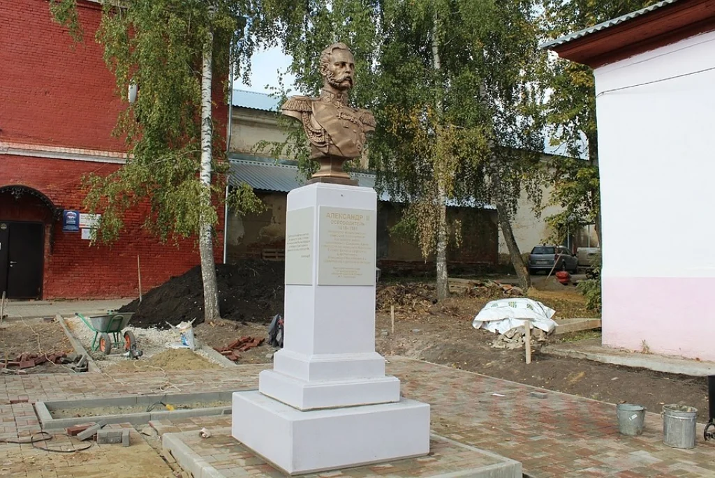 В Веневе возле детской школы искусств установили бюст Александра II весом в 3,5 тонн. Памятник появился там по инициативе краеведа Дениса Махеля.