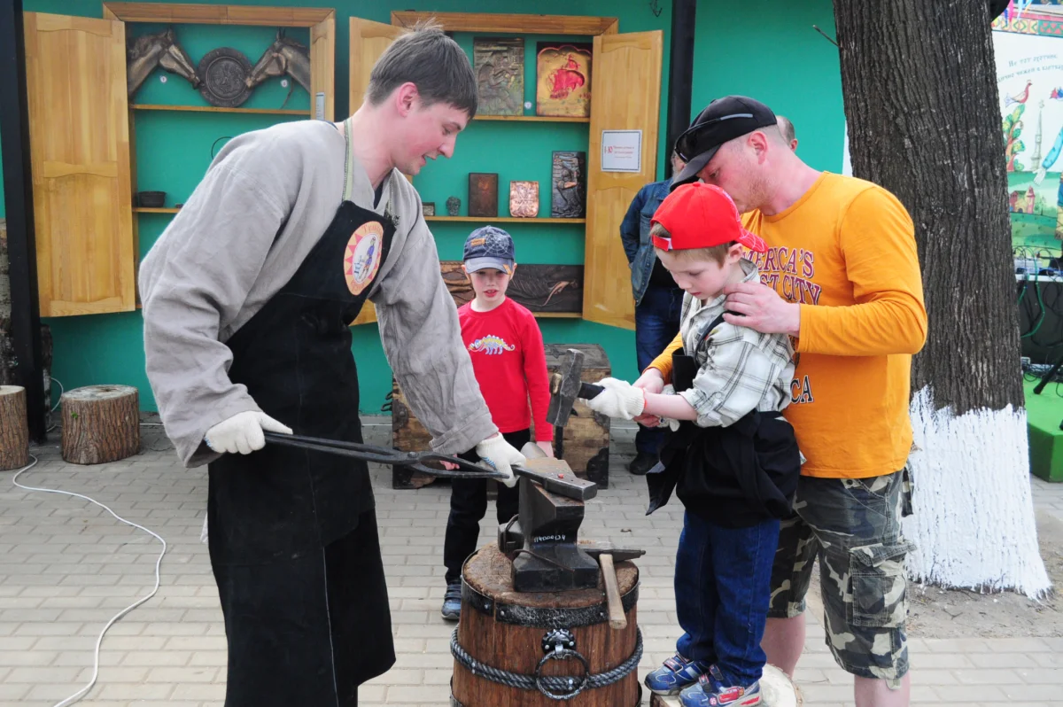 Кузнецы из профессионального сообщества региона посостязаются на баттле в своем ремесле и продемонстрируют процесс создания шедевров. Мастера подготовили уникальные мастер-классы: «белевский нож», «улитка», «собачка», «наконечник стрел», «светец». Поработать с более податливым материалом можно будет на мастер-классе по изготовлению женских украшений из глины. Гостей ждет «Кузнечный квест» и уже традиционные мастер-классы ремесленного двора по ковке, чеканке и гравировке.