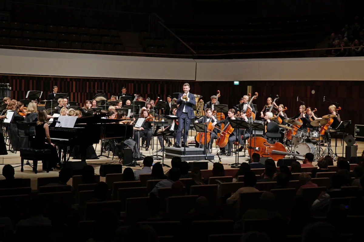 симфонический оркестр. Выступление оркестра посвящено IX Международному музыкальному фестивалю медного духового