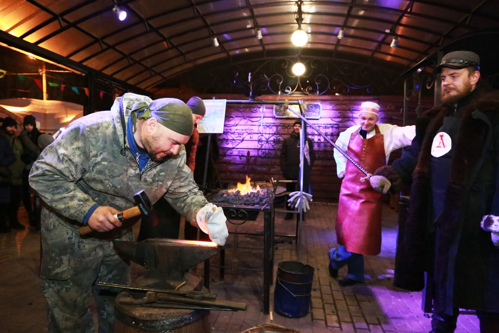 Затем состоялось центральное мероприятие — баттл кузнецов. В «схватке» сошлись шесть мастеров.